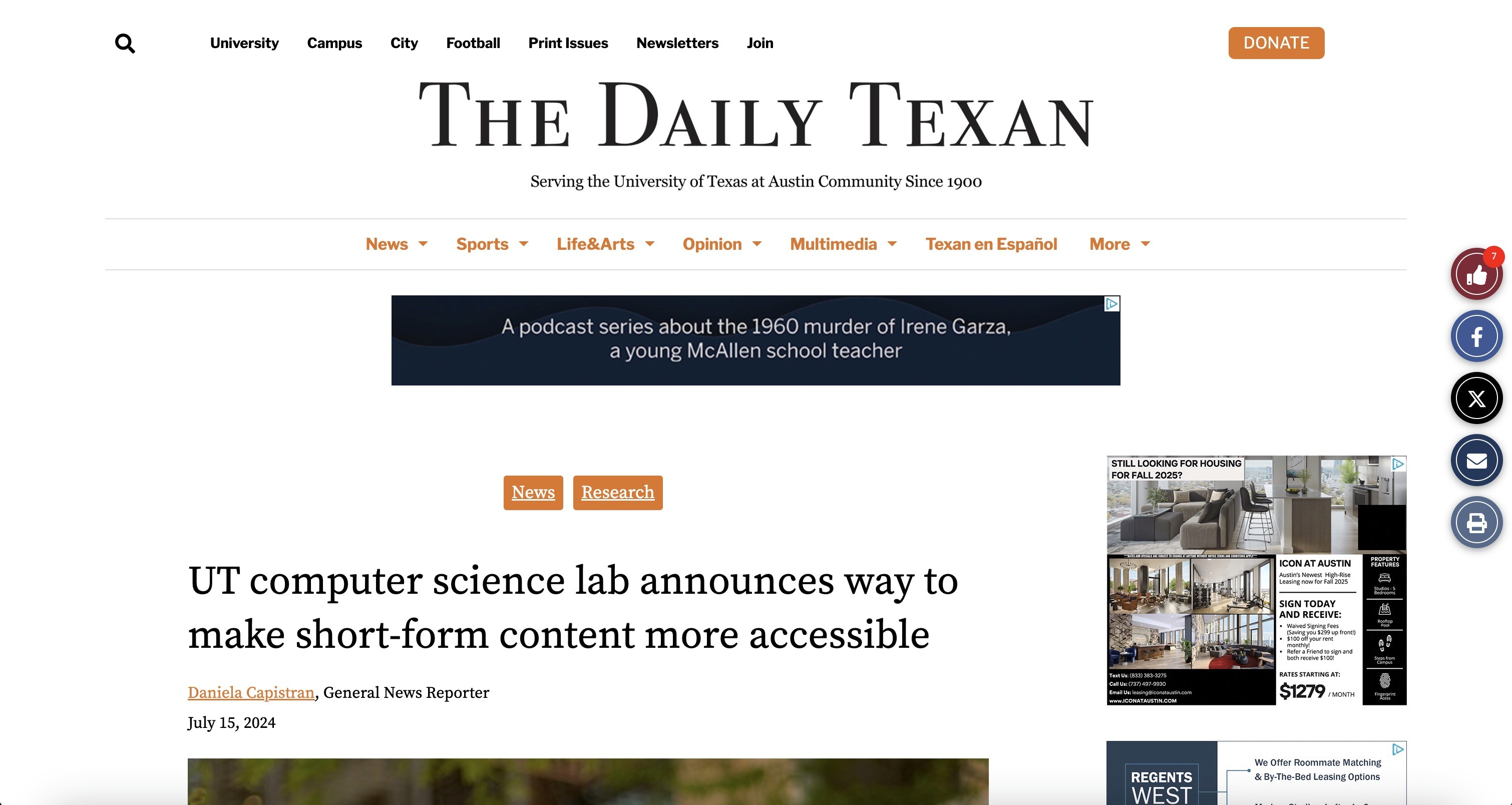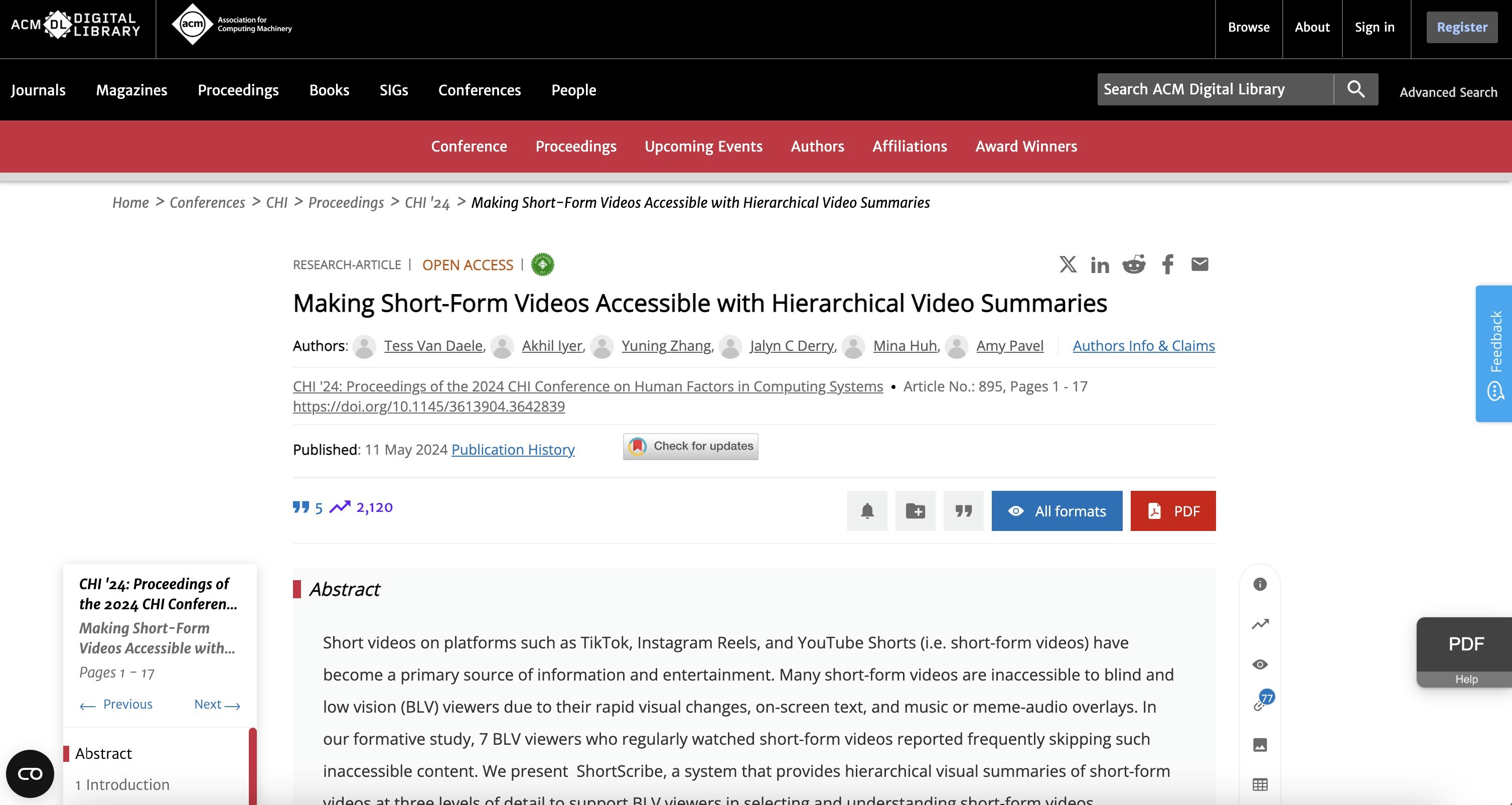 Short-form videos on TikTok, Instagram Reels, and YouTube Shorts remain inaccessible to millions of blind and low vision (BLV) users. I joined the Human-Computer Interaction Lab at the University of Texas at Austin to help address this challenge.