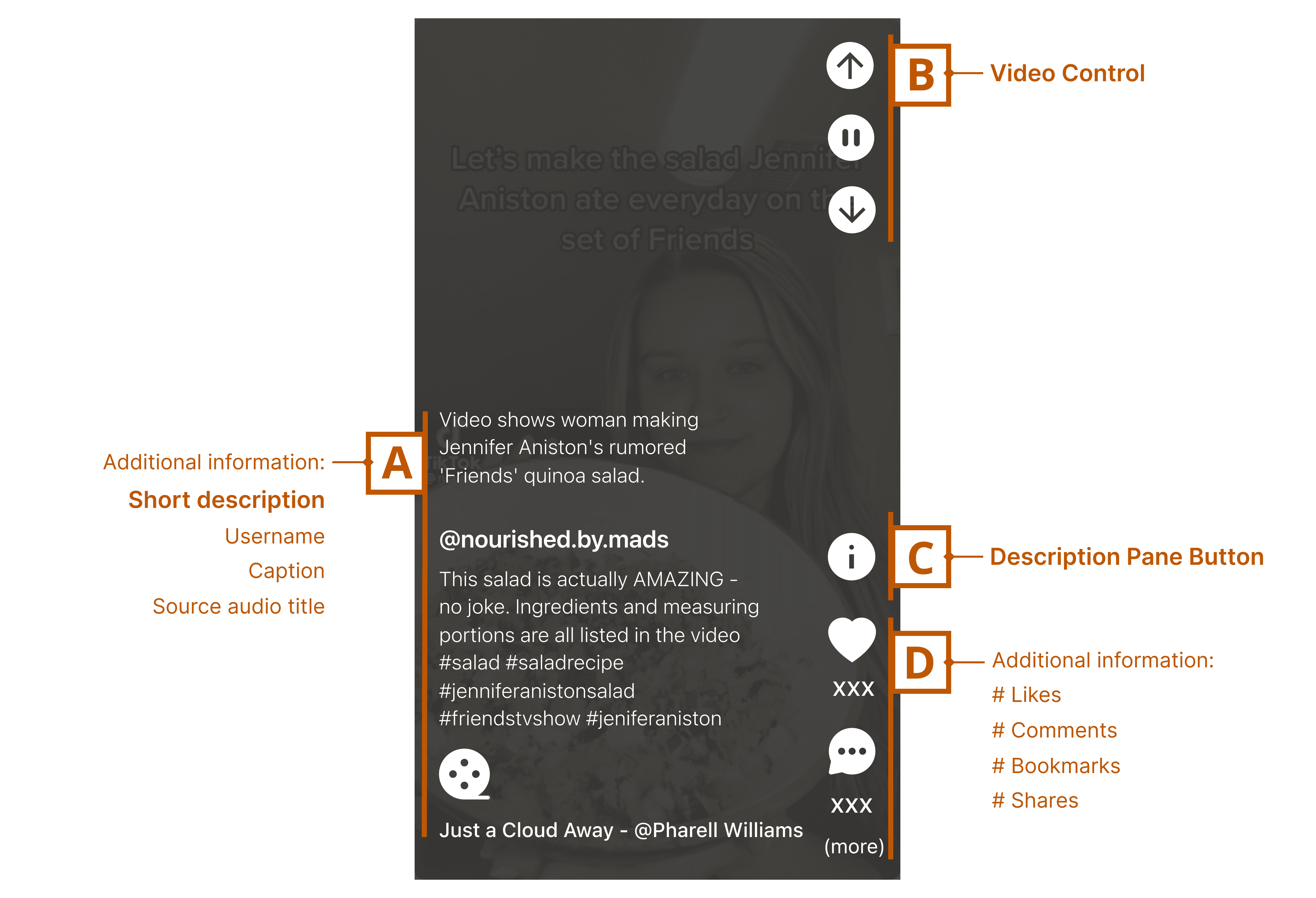 The video pane (built upon existing short-form video platforms) includes